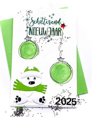 Hele leuke kaart met de beer en de leuke kerstballen!